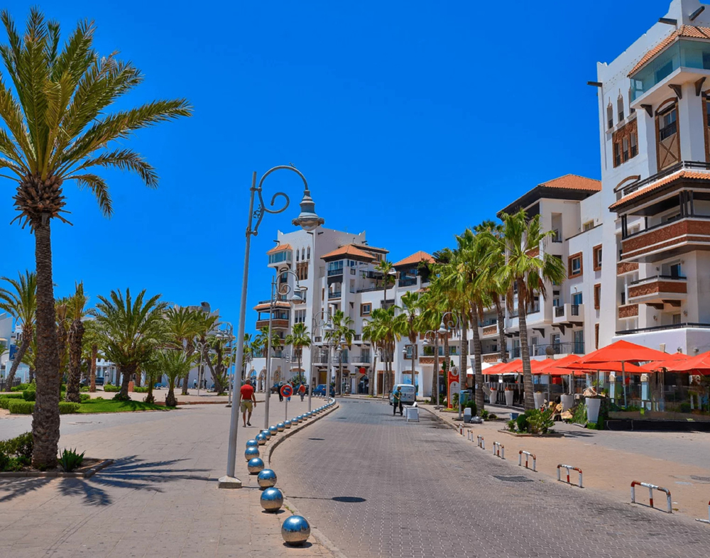 Située sur la côte sud de l’Atlantique marocain, Agadir est une ville moderne et ensoleillée, dont le nom berbère « Agadir n Irir » signifie littéralement « grenier fortifié ». Avec sa plage de sable doré de 10 kilomètres et ses 300 jours de soleil par an, elle est l’un des joyaux balnéaires du Maroc.